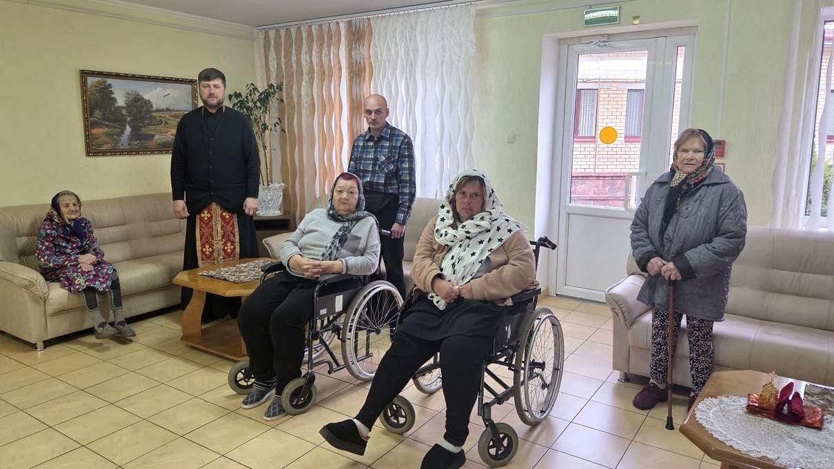 Цѣлью визита стало совершеніе Таинствъ Исповѣди и Причастія для проживающихъ въ пансіонатѣ людей, которые въ силу физическаго состоянія не могутъ посѣтить храмъ.