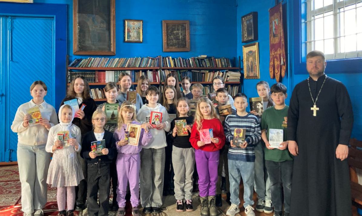 Настоятель храма іерей Димитрій Каратай разсказалъ воспитанникамъ объ исторіи книгопечатанія, о подвигѣ діакона Ивана Ѳёдорова, а также о значеніи духовной литературы въ жизни современнаго человѣка. Священникъ познакомилъ дѣтей съ богослужебными изданіями, которыя используются во время церковной жизни.